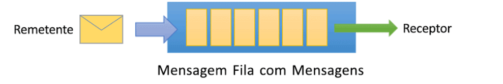 As mensagens são enviadas e recebidas a partir de filas. As filas armazenam mensagens até que o aplicativo de recebimento esteja disponível para recebê-las e processá-las.