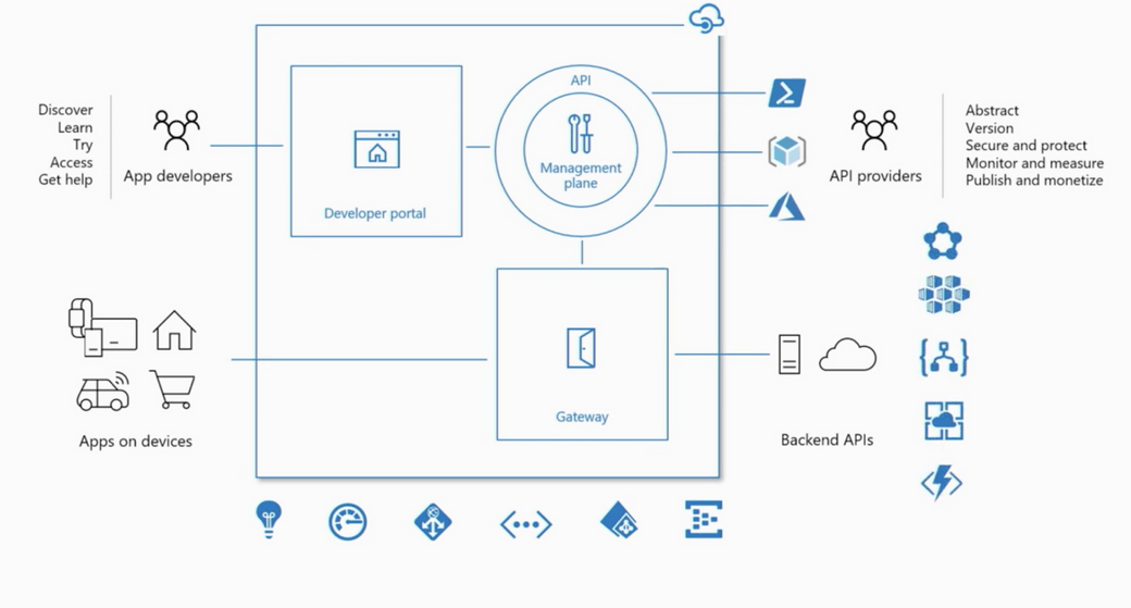 Empresas em todos os lugares estão procurando estender suas operações para uma plataforma digital, criando canais, encontrando novos clientes e estimulando uma interação mais profunda com os clientes já existentes. O Gerenciamento de API fornece as competências essenciais para garantir um programa de API de sucesso através do envolvimento do desenvolvedor, ideias de negócios, análises, segurança e proteção. O Gerenciamento de API do Azure permite usar qualquer back-end e lançar um programa completo de API com base nele.